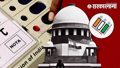 New Delhi : सुरत लोकसभा मतदारसंघात भाजपचा उमेदवार बिनविरोध विजयी झाल्यानंतर सुप्रीम कोर्टात महत्त्वपूर्ण याचिका दाखल करण्यात आली आहे. या याचिकेवर आज कोर्टात (Supreme Court on NOTA) सुनावणी झाली. निवडणुकीत ‘NOTA’ लाही उमेदवार गृहीत धरावे आणि बिनविरोध निवडीवर निर्बंध आणावेत, अशी मोठी मागणी याचिकेत करण्यात आली आहे. त्यावर आता निवडणूक आयोग काय उत्तर देणार, याकडे लक्ष लागले आहे.