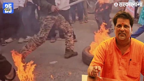 👉 एकनाथ शिंदे यांच्या नेतृत्वाखालील शिवसेनेच्या वतीने आंदोलन करण्यात आले.