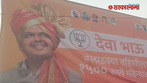 या बॅनरवर वरच्या बाजूला छत्रपती शिवाजी महाराज, भारतरत्न डॉ. बाबासाहेब आंबेडकर, महात्मा ज्योतीराव फुले, सावित्रीबाई फुले तसेच अहिल्यादेवी होळकर यांचे फोटो आहेत. उजव्या बाजूला कोपऱ्यात याच आकाराचे पंतप्रधान नरेंद्र मोदी आणि मुख्यमंत्री एकनाथ शिंदेंचा फोटो आहे. बॅनर लावणाऱ्यांनी आपले नाव गुपित ठेवले असले तरी बॅनर लावण्यामागे देवेंद्र फडणवीसांनाच ‘मोठा भाऊ’ करण्याचा उद्देश साफ दिसत आहे.