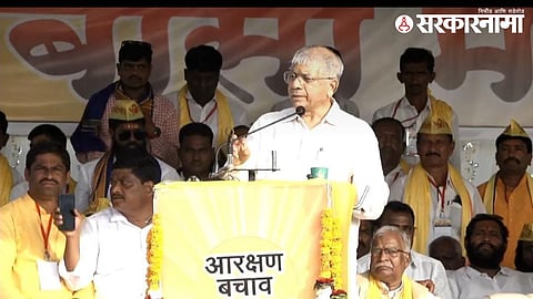 Marathwada Politics News : ओबीसी नेते तथा राज्याचे अन्न व नागरी पुरवठा मंत्री छगन भुजबळ यांची प्रकृती बरी नसल्यामुळे नांदेडच्या नरसी येथील आरक्षण बचाव ओबीसी एल्गार मेळाव्याला ते येऊ शकले नाहीत. त्यांच्या अनुपस्थितीत वंचित बहुजन आघाडीचे सर्वेसर्वा प्रकाश आंबेडकरांनी हा मेळावा गाजवला. भारतीय जनता पक्षाचा अजेंडा हा संविधान बदलण्याचा आहे. त्यांना देशात अध्यक्षीय पद्धत आणायाची आहे. त्यामुळे आरक्षण वाचवायचे असेल, तर आधी संविधान वाचवावे लागेल, असे आवाहन आंबेडकर यांनी केले. (If you want to save reservation, first save constitution; Prakash Ambedkar)