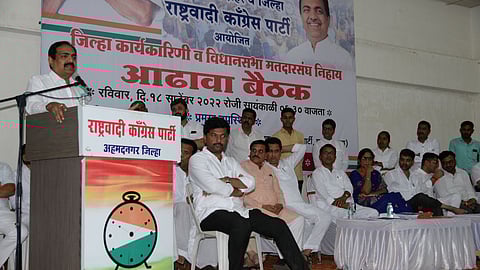 अहमदनगरमधील राष्ट्रवादी भवनात जिल्ह्यातील राष्ट्रवादी काँग्रेसची आढावा बैठक जयंत पाटील यांनी घेतली. या प्रसंगी आमदार आशुतोष काळे, संग्राम जगताप, नीलेश लंके, राष्ट्रवादी युवक काँग्रेसचे प्रदेशाध्यक्ष मेहबुब शेख, जिल्हाध्यक्ष राजेंद्र फाळके, कार्याध्यक्ष संदीप वर्पे, शहर जिल्हाध्यक्ष माणिक विधाते, माजी आमदार दादा कळमकर, नरेंद्र घुले, घनश्याम शेलार, कपिल पवार आदी उपस्थित होते.