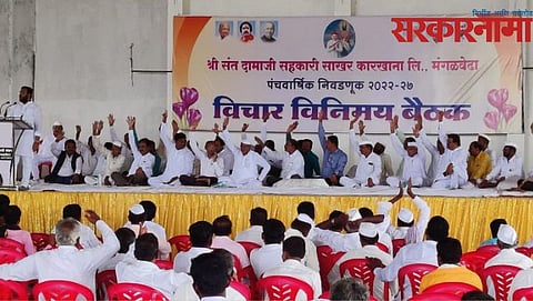 रामचंद्र वाकडे म्हणाले की, उमेदवार निवडत असताना ज्यांना ७०० मते मिळवतील अशांना संधी द्यावी. दामोदर देशमुख म्हणाले की, दामाजी कारखान्याची पुन्हा निवडणूक व्हायची असेल तर सध्याचे संचालक मंडळ हटवले पाहिजे. माजी अध्यक्ष ॲड नंदकुमार पवार म्हणाले की, बॅगॅस, मोलॅसिस, साखर, कोट्यवधींचे भंगार शिल्लक असताना आम्ही सत्ता सोडली होती. पण, विद्यमान संचालक मंडळाने काही शिल्लक ठेवले नाही. नवीन संचालक मंडळाला एफआरपीसाठी ३० कोटींची तरतूद करावी लागणार आहे. दामाजी कारखाना संचालकांनी; नव्हे तर कामगारांनी चालवला, असा आरोपही त्यांनी या वेळी केला.