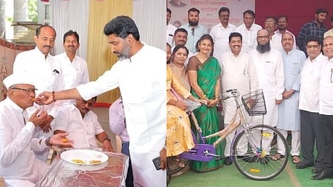 काँग्रेस भवन येथे माजी नगराध्यक्षा अनुराधा आदिक यांच्या वतीने मंगळवारी (ता. 1) दिवाळी फराळाचा कार्यक्रम झाला. यावेळी राष्ट्रवादी काँग्रेसचे प्रदेश सरचिटणीस अविनाश आदिक यांच्या वाढदिवसानिमित्त आमदार लहू कानडे यांच्या हस्ते गरजू विद्यार्थिनीला सायकल भेट देण्यात आली. आदिकांच्या फराळाला ग्रामीण भागातील उपस्थिती जशी लक्षणे होती. तशीच ससाणे गटापासून दुरावलेला अंजुम शेख गटानेही या ठिकाणी तळ ठोकत फराळाचा आस्वाद घेत लक्ष वेधले. यावेळी राष्ट्रवादीचे तालुकाध्यक्ष कैलास बोर्डे, अजय डाकले, माजी उपनगराध्यक्ष अंजुम शेख, रवींद्र गुलाटी, राजेश अलघ, मुक्तार शहा, राजेंद्र पवार, सुनील थोरात, प्रशांत खंडागळे, नितीन गवारे, हंसराज आदिक, राम टेकावडे, शिवसेनेचे दाेन्ही गटाचे पदाधिकारी, अर्चना पानसरे, जया जगताप, प्रियंका जानवेजा आदी उपस्थित होते.