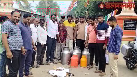 Nagar News : दुधाला प्रतिलिटर 34 रुपये दर द्यावा, असा आदेश सरकारच्या दूधदर समितीने काढला. मात्र, हा शासकीय आदेश राज्यातील सहकारी आणि खासगी दूध संघांनी धुडकावून लावत दुधाचा दर 34 वरून पाडून 27 रुपयांपर्यंत खाली आणला आहे. आतापर्यंत दुग्ध विकासमंत्र्यांनी रयत क्रांती संघटना, दूध उत्पादक शेतकरी संघटनांसोबत दूध कंपन्या आणि संघांच्या बैठका घडवून आणल्या. समितीची दोन दिवसांपूर्वी बैठक झाली. मात्र, शासकीय आदेश दूध कंपन्या आणि संघ जुमानत नसल्याचा निषेध म्हणून आज (ता. २४ नोव्हेंबर) सरकारी आदेशाला ‘रद्दी आदेश’ संबोधत दूध रस्त्यावर ओतत आदेशाची होळी करत आहेत. (Farmers angry with reduction of milk rates.. government protested by pouring milk on streets)