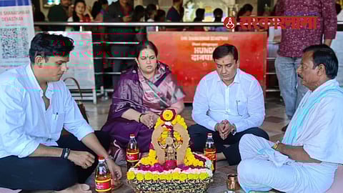 सोनई : कोल्हापूरचे खासदार धनंजय महाडिक (Dhananjaya Mahadik) यांचे चिरंजीव विश्वराज महाडीक यांची भीमा सहकारी साखर कारखान्याच्या अध्यक्षपदी निवड झाली. त्यानिमित्त त्यांनी आज कुटुंबासह शनिदेवाला विधिवत अभिषेक करुन नवसपुर्ती केली.