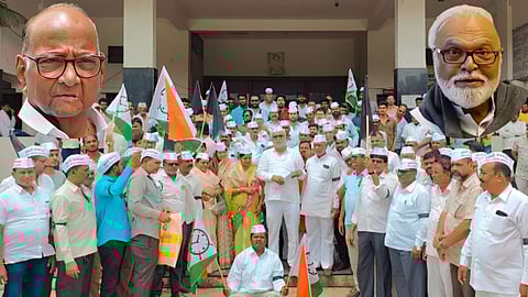 येवल्यातील शरद पवार गटाचे नेते माणिकराव शिंदे आणि राष्ट्रवादी युवक काँग्रेसचे प्रदेश उपाध्यक्ष अॅड. शाहू शिंदेच्या नेतृत्वाखाली आंदोलन करण्यात आले. यावेळी शरद पवारांचा जयघोष करत दुचाकी रॅली काढण्यात आली. हे सर्व कार्यकर्ते तहसील कार्यालयावर जमा झाले. तेथेही घोषणाबाजी करून कार्यकर्तांनी परिसर दणाणून सोडला. यावेळी तहसीलदार आबा महाजन यांना निवेदन देण्यात आले.