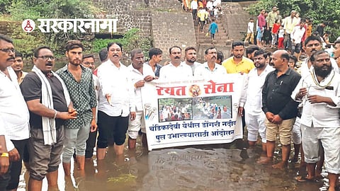 येथे तत्काळ पूल उभारावा, यासाठी रयत सेना आक्रमक झाली असून, बुधवारी (ता.५) डोंगरी नदीच्या पाण्यात उभे राहून आंदोलन करीत सर्वांचे लक्ष वेधले.