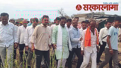 Shivsena Nandgaon News : गेले काही दिवस अवकाळी पावसाने शेतकऱ्यांची झोप उडाली आहे. घोषणा होऊनही राज्य शासनाची मदत मिळालेली नाही. या विरोधकांना अनुकूल स्थितीचा विरोधी पक्षनेते अंबादास दानवे यांनी चांगलाच फायदा घेतला. त्यांनी थेट शिवसेना बंडखोर आमदारांच्या मतदारसंघातच शेतकऱ्यांच्या बांधावर जाऊन पाहणी केली. यावेळी त्यांनी राज्य सरकारला चांगलेच धारेवर धरले. (Leader of opposition Amabadas Danve visit affected farmers farms at Nandgaon)