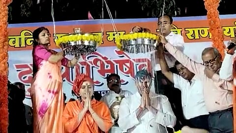 तब्बल दिड महिन्यांच्या कालावधीनंतर अमरावतीत आगमन होताच राणा दाम्पत्यांचं ठिकठिकाणी भव्य स्वागत करण्यात आले. याशिवाय ठिकठिकाणी हनुमान चालीसा पठण देखील करण्यात आले. (Navneet Rana and Ravi Rana news) राणा दांपत्य त्यांच्या अमरावतीतील गंगा सावित्री निवासस्थानी पोहचल्यानंतर रात्री राणा दांपत्याचा दुग्धभिषेक सोहळा पार पडला. नवनीत राणा आणि रवी राणा दोघांना सोबत बसवून दुग्धभिषेक करण्यात आला. नागरिकांच्या समस्या सोडविताना एक नवा संकल्प करून पुढील वाटचाल करणार असल्याचं सांगत राणा दाम्पत्याने सांगितले.