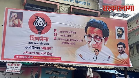 मशाल चिन्ह पक्षाला मिळाले असून या शब्दाची नेमकी उकल करत त्यामागचा मथितार्थ त्यांनी बॅनर वर मांडला आहे.