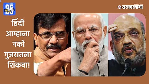 बेळगावात मराठी भाषेवर इतका अत्याचार होत असताना भाजपच्या नेत्यांनी तोंडवर केलं आहे का? हिंदीला वैधता नसली तरी हिंदीला राष्ट्रभाषेचा दर्जा आहे. या महाराष्ट्रातून हिंदी सिनेमा, हिंदी गाणी, हिंदी साहित्य, नाटक यांचा उगम झाला आहे. पण जिथे हिंदी नाही तिथे हिंदीची सक्ती करू नका, असे राऊत म्हणाले. हिंदीचं विद्यार्थ्यांवर ओझ लादू नका. आम्हाला हिंदी शिकवू नका, गुजरातला शिकवा, असा टोमणा राऊतांनी मोदी-शाह यांना लगावला.
