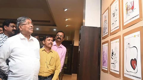 यावेळी चंद्रकांत पाटील यांनी राजकीय नेत्यांवर मिश्किल टीपण्णी केली. एक व्यंगचित्र राजकीय नेत्यांना त्यांचं समाजातलं आपलं स्थान दाखवून देतो. इथे तर या प्रदर्शनात तर अनेक व्यंगचित्रे आहेत. जी त्या नेत्यांना करेक्ट झोंबतील, असेही पाटील म्हणाले.