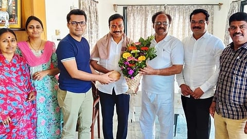 पुणे : पुणे जिल्हा मध्यवर्ती सहकारी बॅंकेचे (pdcc bank) नवनिर्वाचित अध्यक्ष डॉ. दिगंबर दुर्गाडे (Digambar Durgade) यांनी आज (ता. १७ जानेवारी) बॅंकेचे माजी अध्यक्ष तथा दौंडचे माजी आमदार रमेश थोरात (Ramesh Thorat) यांची त्यांच्या खुटबाव येथील निवासस्थानी जाऊन भेट घेतली. डॉ. दुर्गाडे यांची निवड शनिवारीच (ता. १५ जानेवारी) झाली आणि अवघ्या एकाच दिवसात अध्यक्ष दुर्गाडे यांनी माजी अध्यक्ष थोरातांचे घर गाठल्याने चर्चेला उधाण आले आहे. (Digambar Durgade meet to former MLA Ramesh Thorat)