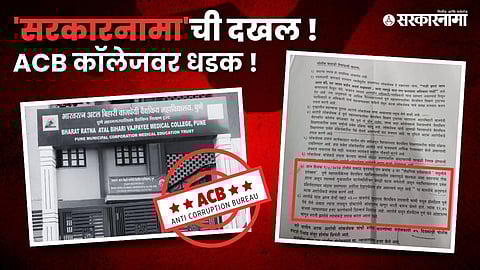 AtalBihari Vajpayee Medical College News : पुणे महापालिकेच्या मेडिकल कॉलेजमध्ये पात्र विद्यार्थ्यांना 'ब्लॅकमेल' करून त्यांच्याकडून कोट्यवधी रुपये वसूल करणाऱ्या प्रकरणाचा पोलखोल करणाऱ्या 'सरकारनामा'च्या बातमीची पुणे पोलिसांसह 'अॅण्टी करप्शन'नेही मोठी दखल घेतली आहे. या कॉलेजमध्ये विद्यार्थ्यांकडून कधी, कशाप्रकारे आणि किती पैसे वसूल केले याच्या शोधात जाण्यासाठी पोलीस यंत्रणा आता या वृत्ताचा आधार घेणार असल्याचे स्पष्ट असून, पोलिसांच्या रिमांड रिपोर्टमध्ये तसा उल्लेख करण्यात आला आहे. त्यामुळे मेडिकल कॉलेजमध्ये गरीब, हुशार विद्यार्थ्यांना लुबाडणाऱ्या रॅकेटचा पर्दाफाश होणार आहे. परिणामी, या प्रकरणाला खरोखरीच 'सरकारनामा'चा जबरदस्त दणका बसणार आहे.