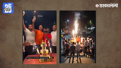पिंपरी चिंचवडमध्ये रात्री बारा वाजताच्या ठोक्यालाच सांगवी पोलिस ठाण्यासमोर फटाक्यांची आतिषबाजी करण्यात आली. केक, आकर्षक फटाके, ड्रोन अशी सगळी सोय करण्यात आली होती. पोलिस ठाण्यासमोरील रस्त्यावर मधोमध टेबल टाकून बर्थडे सेलिब्रेशन केले. फटाक्यांच्या फायर गणमधून आतिषबाजी करण्यात आली. याचवेळी दुसरीकडे स्काय शॉट आणि आयटम बॉम्ब फुटण्यात आले. ही आतिषबाजी बराचवेळी सुरु होती.